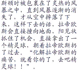 “我要收服那家伙,借用你们的电系神奇宝贝用一下!”阳闻声后开口说出了惊人的想法,收服拉帝欧斯,传说中的神奇宝贝,不过很快就释然了,似乎阳所拥有的传说中的神奇宝贝也并不少的,现在想想要阻止拉帝欧斯,似乎也只有收服它这个方法了。而阳这么一说也都明白是怎么回事了。