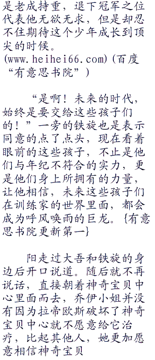 “不用担心,相信阿阳吧!!”小胜刚想说什么,就被阳示意不要说话了,随后阳继续的朝着前面拉帝欧斯走去,而小智则是走到了小胜的旁边拍了拍小胜的肩膀开口说道。众人听到小智的话也都没有再说什么,反而是大吾和铁旋好奇的好着眼前的阳和拉帝欧斯,当然更多的是在防备着。