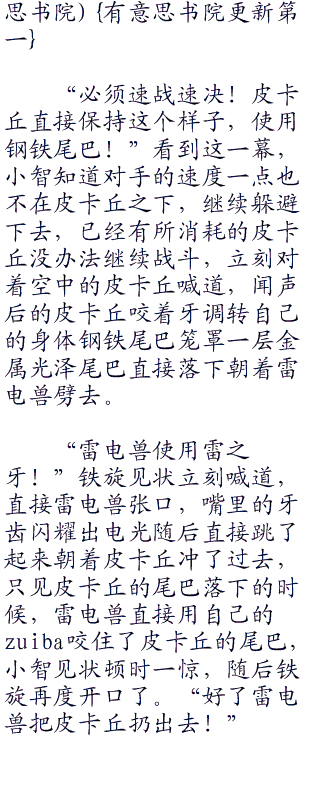 “小智拿下第一场胜利了,干的不错嘛!”小胜见状而已是开口说道。虽然有点惊险,不过总算是成功的拿下第一局了,皮卡丘的表现也很好,铁旋见状豪爽的大笑着开口说道。“哈哈!小智干的不错,这样的比赛才有意思!不过想要从我这里拿走徽章可不是那么容易的哦!接下来的这个家伙,可是很难缠的,你可要有心理准备了!”