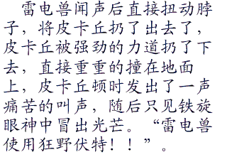 “落雷兽看起来好厉害的样子,不知道什么地方可以找得到,我也好想要一只呢 !”看着眼前场中出现的落雷兽,卡米兹蕾有点期待的说道。对于电系的神奇宝贝她可是很喜爱的,何况落雷兽的样子看起来也很符合她的审美标准,而小遥则是开口道。“上一次和阳的比赛并没有看到它上场呢!”