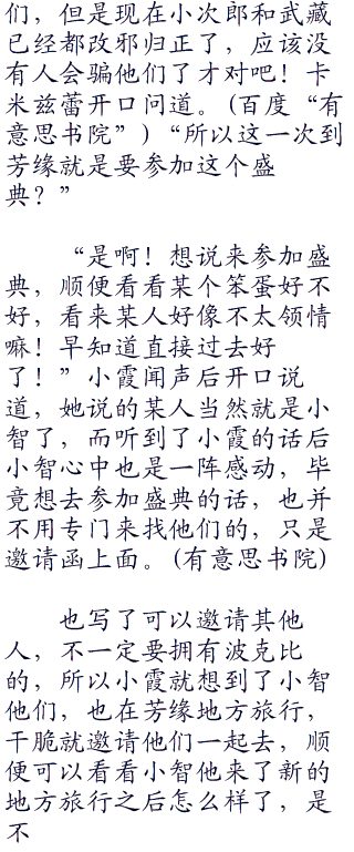 “至于我来芳缘的原因是这个!”说着话小霞就拿出了一样东西,是一张卡片,准确来说是一张请帖,阳见状见过了阳手中的那张请帖,看了看其中的内容,卡片上大概写着的就是,邀请拥有波克比的神奇宝贝训练家,到绿洲饭店参加那个地方举办的波克比庆典,而那个位置就在芳缘地方。