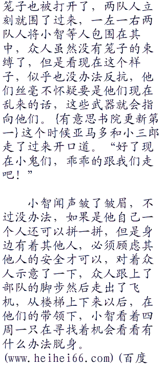 “你们这两个可恶的家伙,怎么老是阴魂不散啊!快点放我们出去!”小智抓着笼子对着笼子外面的亚马多和小三郎喊道。不过很显然是不现实的,要放了他们就不会抓他们了,当然他们的本意根本就不是小智等人,而是如阳说的,是小霞手上的波克比,当然想要直接夺走波克比没那么容易,所以才用这招。