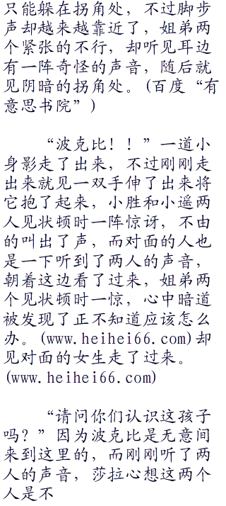 随后发现,梦幻也不在这里,只要梦幻跟他们两个在一起就没有问题,小智想了想也觉得只能先这个样子了,随后就和小刚小霞两人走进了巷子深处,而此时三人惦记的小遥和小胜两人情况又如何了呢?“姐姐现在怎么办?小智他们也不知道到哪里去了,这样下去很快就会被发现的!”