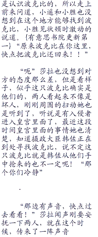 “我也不知道呢!”小遥心中也是有点慌,这种情况她以前也是没遇过的,这一次她也完全没有主意了,毕竟以往不管是什么时候,和阳分开以后跟小智他们在一起,和阳在一起的时候,都有阳和娜姿照顾,这一次姐弟两个单独失散在这个皇宫里面,毕竟只是一个十岁的女孩子了,还不知道要怎么办了。“妙!!”