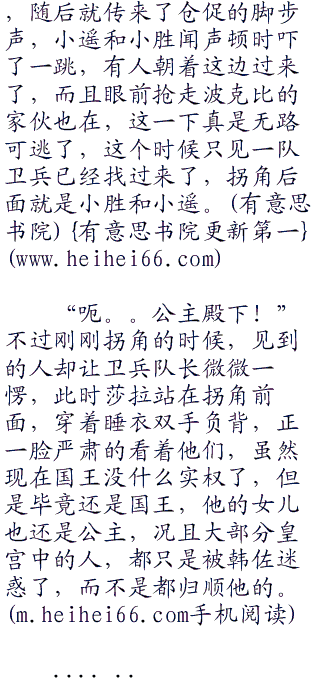 “梦幻你是让我们走那边吗??”旁边的梦幻闻声后指了指前面的,两人见状对视了一眼,随后小胜开口问道。梦幻闻声后点了点头,两人知道梦幻不会害他们所以听着梦幻的话朝这个那个方向走去,果然这个地方没有卫兵,梦幻的超能力很惊人,轻松就可以感应到周围的状况,自然不会指点两人有人的地方。