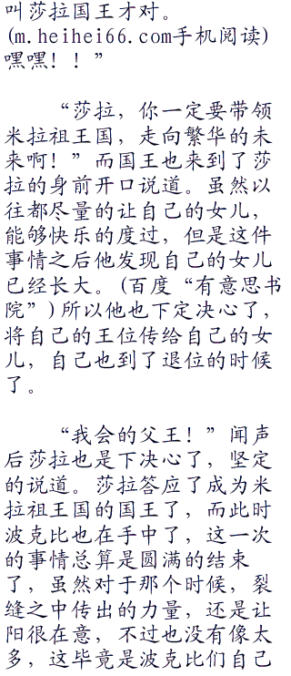 米拉祖王国的王位继承权,按照有没有波克比的庇护而继承王位,虽然现在韩佐的叛乱被阻止了,但是米拉祖王国这些年来,都被灌输了这一任的国王没办法得到波克比庇佑的思想了,所以要让莎拉的父亲下台的信念已经根深蒂固了,所以只要没有波克比莎拉的父亲迟早要退位。