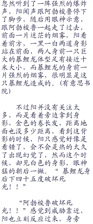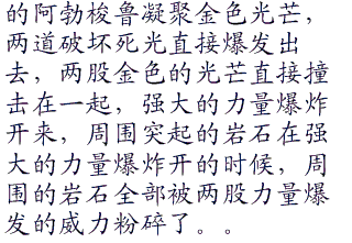 只见声音落下,光芒之中,一道粉色与金色形成的能量波冲开了光芒,直接撞在了冲上前来的大狼犬的身上,直接将大狼犬给撞了出去,能量波压这大狼犬撞在了前方的岩石上面,岩石立刻承受不住撞击的威力崩裂开来,大狼犬被镶进了岩石之中,光芒散去,阿勃梭鲁向后跳到了阳的身边站在。