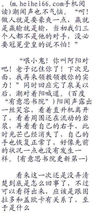 在泉美话落的同时,另外一边也是一架直升机朝着这边飞了过来,水舰队虽然行动都在海上,但是不代表他们没有其他军事力量,要是这样的话就太小看他们了,只见直升机的门口一道梯子也放了下来,潮站在直升机的门口。“好了泉美!我们该走了米可利那家伙也来了,我可没兴趣跟这个难缠的小子玩!”