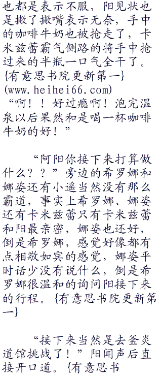 感觉身上的疲劳好像随着进入温泉一样被一点一滴的洗掉了,感觉舒服了许多,将手也放在绥中,阳又是忍不住举起自己的右手,平平常常什么也没有,伸手去触碰掌心也没有什么奇怪的地方始终没有想出什么结果,也不再多想将脑袋扎进温泉里面,尽量让自己不要娶想其他事情。