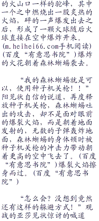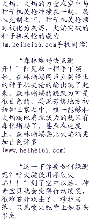 “谢谢您的提醒,但是要的就是这句话,全力以赴才好,森林蜥蜴使用种子机关枪!”阳闻声毫不在意的说道,随后直接对森林蜥蜴下达了命令,森林蜥蜴闻声之后,直接张口吐出了金色的雨点,如同机关枪一样爆发出去,金色光点在空中飞舞,对面的喷火驼不为所动。