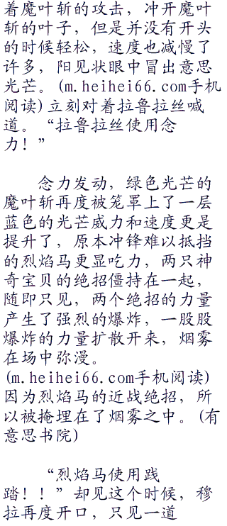 众人闻声后看向了场中,一开始的时候,烈焰马的硝焰冲锋冲击,魔叶斩与之对抗的时候,每一次冲击都是直接被冲开,然后就被那炙热的火焰化为灰烬了,但是在经过卡米兹蕾这么一说之后众人确实发现了不对劲原本毫无作用的时候,烈焰马并没有如同一开始的时候冲进迅速。“真的耶!为什么??”