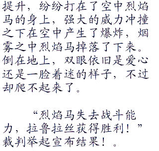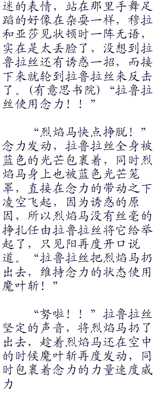 “是啊!拉鲁拉丝的攻击一点作用都没有,反而是体力一直在消耗,再这样下去的话,拉鲁拉丝会很危险的!”听到小胜的话后,旁边的小遥也是同意的点了点头开口道。无论怎么开起来,如今的场中都是阳处于不利的状态。“哼!嚣张的家伙,这一次看你还敢小看爷爷!!”