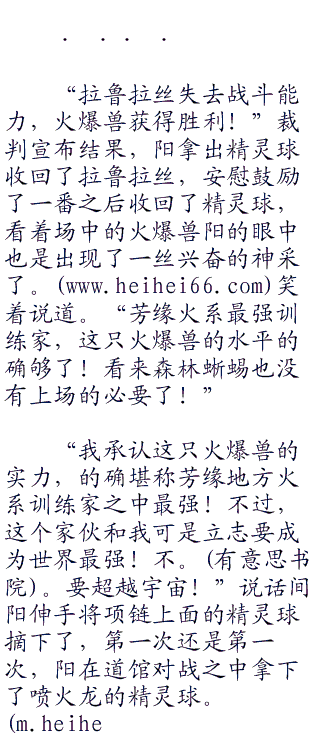 “爷爷。。爷爷竟然连输了两局!这。。这怎么可能呢?”看着眼前的比赛结果,亚莎好像不愿意相信这个事实一样。以往就算是有人赢了自己的爷爷,也绝对是险胜从来没有像是今天这样的结果,连续两只神奇宝贝都被对方打败了,而且对方的三只神奇宝贝都还能够继续战斗呢!