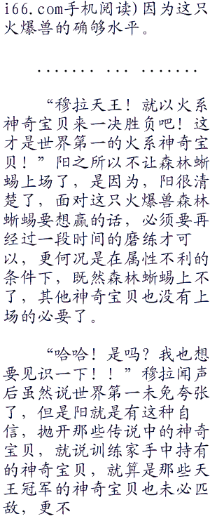 “火爆兽?!”看清眼前的神奇宝贝,小胜一眼就认出了,眼前的神奇宝贝火爆兽,在神奇宝贝训练家的世界里面,最基本的神奇宝贝知识,就是新人训练家所使用的神奇宝贝了,火爆兽是火岩鼠的进化型,也就是城都地区初始御三家之一的火系神奇宝贝火球鼠的最终进化型。