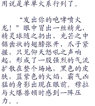 “上吧我的老朋友!!”穆拉扔出手中的精灵球,光芒之中发出了一声吼叫声,高大的身影逐渐出现在眼前,足足有接近两米高,脸上凶狠的表情,口中尖锐的牙齿,伴随着吼叫声,双手爪子紧握,身上力量一发,背后一股炙热的火焰喷射出来,在背后不断的燃烧着。仿佛周围的温度都骤然提升了一样。