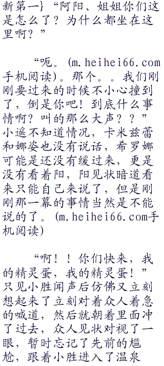 “咳咳咳咳!!”一阵奇怪的尖叫声传来,喝着咖啡的阳顿时被呛住了,不过很快的就反应过来,为什么说这个尖叫声奇怪呢?因为这个尖叫声不是女生那边传来的,而是男生这边的温泉里面传来的,而且这个声音正是小胜的声音,阳见状连忙将咖啡放下跑了过去。