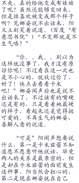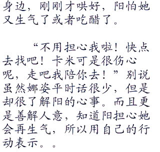 “不是什么?跟我们这里就说是意外,跟希罗娜小姐就说不是对不对?哼!坏家伙我算是看透你了!哄你的希罗娜酱去吧!”刚开门卡米兹蕾就是一番连番炮火,一脸气愤的样子,随后推了阳一把,直接朝着左边的走廊离开了,阳能够注意到,卡米兹蕾离开的时候,眼角泛出了泪光。