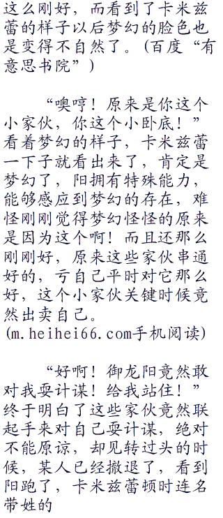 “呃”阳闻声脸色顿时一变,难道要说自己是感应到了梦幻,并且故意让梦幻不要告密的吗?旁边的娜姿则是偷笑着看这样,一副看你这回怎么收场的表情,看阳这个表情,卡米兹蕾就知道肯定有问题,不然哪里会来的