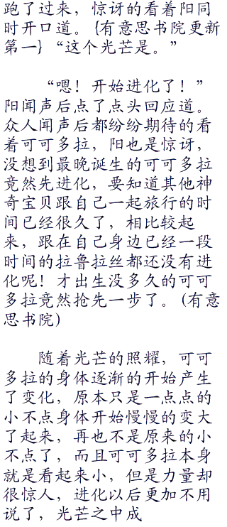 “扣扣”就在这个时候,只见可可多拉刚抬起头的时候,对着阳低声叫了叫,随后身上被一层光芒笼罩了,阳见状微微一愣,将手收了回来,随后站起身来,那边的小胜也被吸引了目光连忙