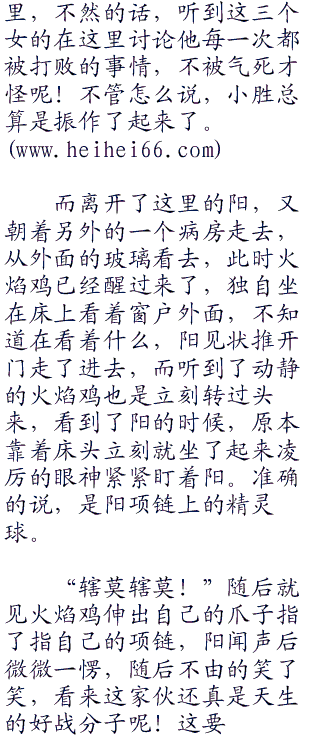 “唉希望小胜可以想得通吧!”旁边的卡米兹蕾闻声后也是开口道。不过想想自己和娜姿也是道馆训练家,平时和训练家交手的时候,是绝对不会放水的,这是违反规定,也是一种违背训练家之魂的行为,听了卡米兹蕾的话,娜姿也是说道。“想得通但未必想得开呢!”