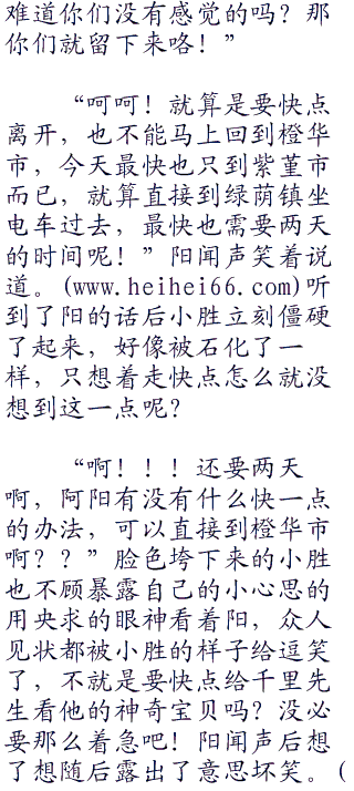“那么我们就告辞了!”次日,小胜总算是恢复了,好在有乔伊小姐给的特效药,第二天小胜到了厕所里面好好的排泄了一通以后,就完全恢复了,而此时,众人已经来到了缆车站外面了,还是走的原来的路线返回,这一次是要回橙华市,所以这一次走的路线是从釜炎镇到紫堇市,然后到绿荫镇坐隧道电车到卡那兹市随后到橙华市。
