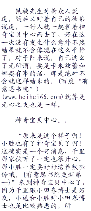 没错这个人不是别人,正是芳缘地方最有名望的神奇宝贝博士小田卷博士,只是对于小田卷博士为什么在这个地方,众人都觉得很惊讶,而铁旋先生见状则是说道。“好了,大家都是熟人,不用那么客套了,先到神奇宝贝中心去坐下来慢慢聊吧!你带人把这里的事情处理一下!”