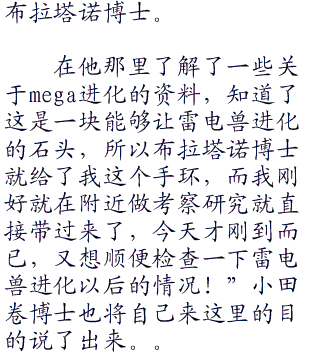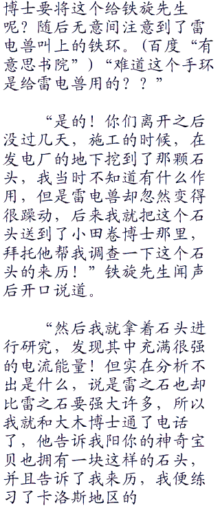 “嗯??”而阳眼神之中出现了一丝惊讶,只见那只雷电兽的两支前爪的左边,带着类似于护腕一样的金色与黑色条纹的铁环,铁环的中心镶嵌着一个主体为金色,中间部分形成好像黑色雷电一样的图纹,对于阳来说这种石头已经不是第一次见了,这个东西分明是mega石。可是么这只雷电兽会有呢?