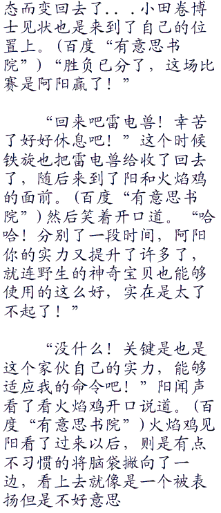 “那么这场比赛该结束了!”阳说话的同一时间,出现在了雷电兽身后的火焰鸡,拳头紧握,燃烧着火焰的火焰拳直接轰出,打在了雷电兽的后背,雷电兽再度被火焰拳给打飞了出去了,打飞雷电兽之后,火焰鸡再度化作了一道红色流光,在空中划过一道轨迹,练习遭受了两次攻击的雷电兽,这一次再也没办法发动反击了。