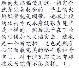 “火焰鸡利用手臂的火焰!”雷电兽顿时开始剧烈的挣扎起来了,火焰鸡抓着雷电兽也变得艰难了起来了。不过阳早就知道雷电兽会挣扎了,所以早就已经想好了对策了,听到了阳的命令,只见火焰鸡双手蔓延出来的火焰飘带,直接如同绳索一样将雷电兽绑住了,雷电兽顿时没办法动弹了。
