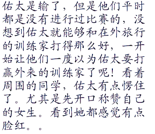 “娜姿姐卡米姐你们在说什么啊??小胜他到底做了什么?”旁边的小遥和阿光两人听得满头雾水,不知道两女说的是什么意思,毕竟他们看来小胜现在的做法实在让人不能理解,站在两人前面的阳眼睛始终没有离开场地开口道。“等一下你们就会明白了,先仔细看比赛吧!”