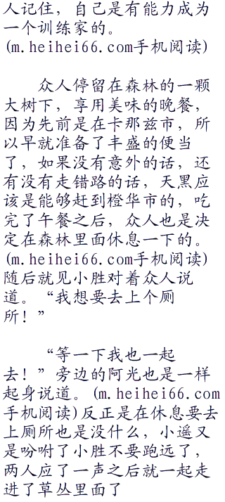 “呜!太好了,只要过了橙华森林,很快就可以到橙华市了,好开心啊!”休息了一天之后,众人都是一惊恢复了体力了,今天的小胜心情可是大好的,不止是因为昨天晚上经历了人生第一次的战斗,今天更是可以直接回到橙华市了,可谓是让他的心情大好,不过这一次可是吸取教训,没有再吃太多东西了。