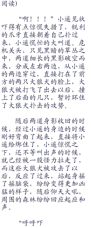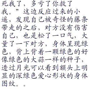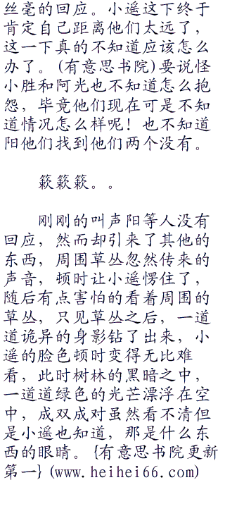 “小胜!阿光!你们在不在这里。”众人之中最担心两人的还要属小遥了,毕竟一个个弟,一个是一起长大的好朋友,还有现场留下的痕迹,实在是让她想不担心都难,一边喊着一边寻找,逐渐的走进了森林的深处了,而这边的卡米兹蕾和娜姿会和了。“怎么样??”