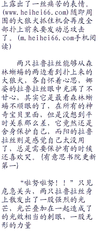 “嗷嗷嗷!!”此时这些大狼犬因为同伴受伤纷纷变得更加凶恶,再度将森林蜥蜴和拉鲁拉丝们包围了起来,森林蜥蜴倒是神态自若没有太紧张。护在两只拉鲁拉丝前面,只见对面一只大狼犬率先冲了过来,口中牙齿冒出了尖锐的光芒,指教朝着森林蜥蜴扑咬了过来。