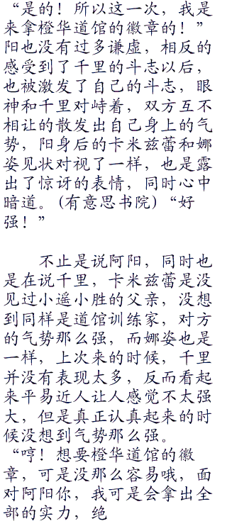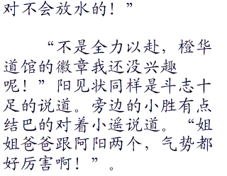 跟着小胜和小遥,很快的来到了橙华道馆,比起其他的道馆,橙华道馆倒是显得平常许多,因为橙华道馆本来就是属于普通系的道馆,所以不会弄的太花俏,众人进入道馆里面,都是复古的木材质的地板,一直从道馆的前面走到后院因为小遥和小胜的家就是在道馆后面的。