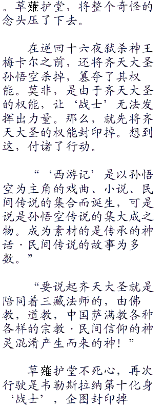 “”草薙护堂哑口无言着,的确来此寻找于十六夜谈判之前,得到了正史编纂委员会的全力支持,将关于十六夜弑杀的神御位是谁,以及关于其神话的知识,早就搞清了。
