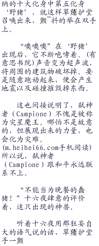 而且,使用过一次的化身一天之内无法再次使用。也是就说,被十六夜打碎得第十化身‘战士’,将不能在使用了。