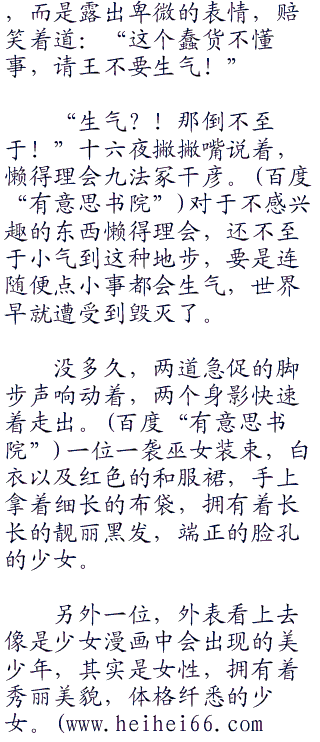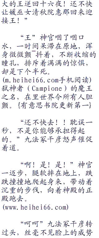 “哦呵”十六夜嘴角一扬,便转过头,对着由于他们忽然出现,而微微陷入呆滞状态的神官,态度十分恶劣的吩咐着道:“去,将清秋院惠那给我叫出来!”