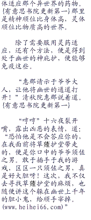“惠那确实出入过幽世多次修炼,但那都是爷爷大人召唤惠那,打开幽世的通道让惠那进入的!”清秋院惠那恭敬地解释着道。她能够进入幽世,也是由于须佐之男的缘故。
