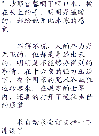 对视上那道冰寒的眸光,九法冢干彦情不自禁的打了个冷颤,双~腿一软,赶紧跪下,将头重重得扣在地上,额头紧贴着地面一动不动在没有得到十六夜的宽恕之前,更消这样的姿态能为她争取到一丁点的好感,嘴中赶紧解释着道:“王,下仆不敢欺骗于您!清秋院惠那与幽世有着千丝万缕的联系,多次出入幽世中。”