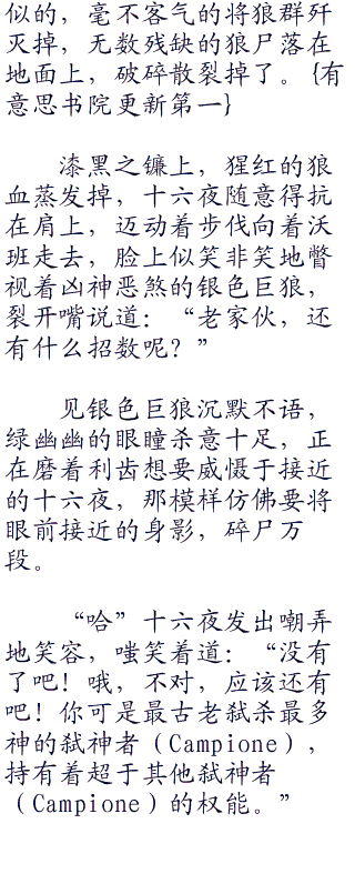 十六夜肆意的舞动着漆黑之镰,黑色利刃爆闪着,几下闪过的寒光。刹