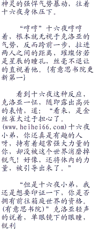 “游戏?!”十六夜似笑非笑得瞥视了克洛亚一眼,裂开嘴嘲弄着道:“都知道我在破解游戏了。眼镜混账,装睡可一点也不合格哟”