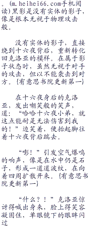 “想到外面去,那就获得追加游戏关卡的胜利。来吧,将你的力量展示给我看一下吧”说罢,克洛亚身体溶解,化为一道无形的黑影,紧贴着地面滑行向着十六夜冲~刺而来。