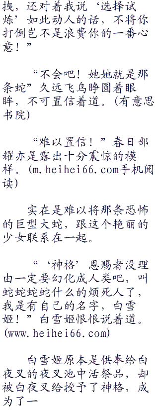 “不就是我咯!”十六夜轻笑着,还立即指责着她,道:“谁叫你巨蛇形态这么