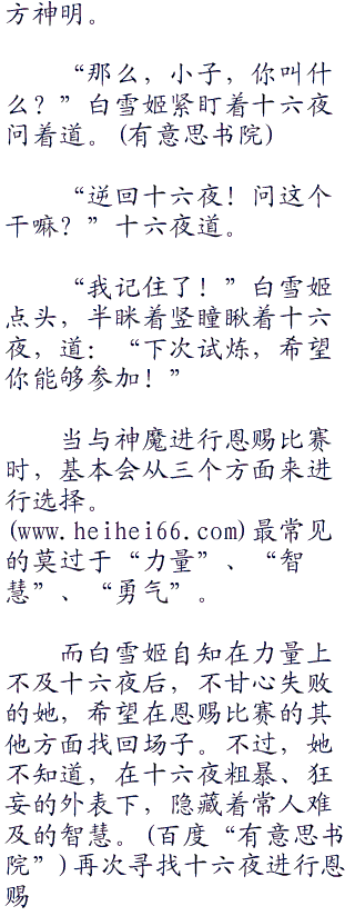 “哼!”白雪姬冷哼一声,瞪了十六夜一眼,竖瞳上映着十六夜的身影,摸着隐隐约约发出的额头,不满着道:“真是无礼的男人!哪有人碰到女人,就往着她额头和腹部来上一击。”