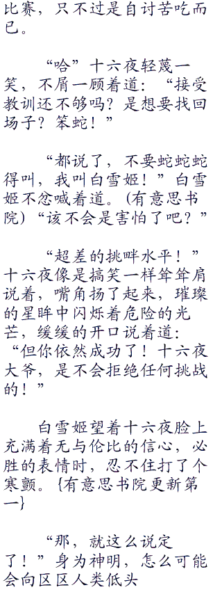 “哦呵笨蛇,你醒了?”十六夜半眯着灿烂的星眸,含笑得回应着道。