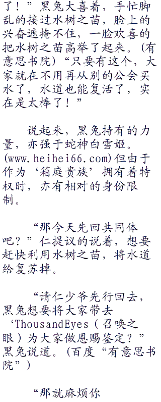 “啊!”黑兔一惊,情不自禁的抓住十六夜的手,一副感动泪汪汪的样子,道:“谢谢!”