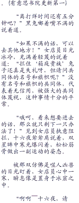 “这个嘛”处于关键时刻的十六夜,懒懒的换了一边二郎腿,一副无所谓的表情,璀璨的星眸映着某只黑兔仿佛是等待着审判的模样,不禁扬了扬嘴角,轻浮笑着道:“加入了哟!”