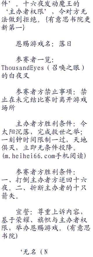 “喂小子,你搞什么鬼?”白夜叉转过头望着十六夜,感到十分疑惑,不解着道:“找了个对咱有利的游戏场所?你是不是疯了?”作为掌管着太阳运行的星灵,此地足以提升她的威能。面对的小鬼,貌似不是笨蛋,怎么会如此不智呢?