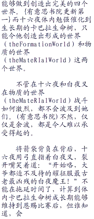 换句话说,此刻十六夜心脏内部,为他源源不绝提供着难以想象的力量的显现出来的树形,只不过是暂时性的。在‘威光’消耗的时间过去,将会恢复原本的姿态,等待着十六夜令它真正起来。