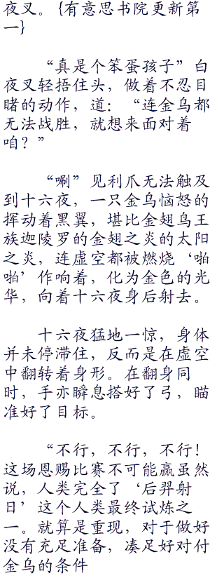 在十六夜‘复制’了久远飞鸟的‘威光’,催化于卡巴拉生命树灵格。拥有着这股强大的力量后,瞬息演化出物质的世界(theMateRIalWorld),重现于人类英雄‘后羿射日’的人类最终试炼之一典故,而形成这个游戏场所,正适合用来对方太阳星灵的白夜叉。